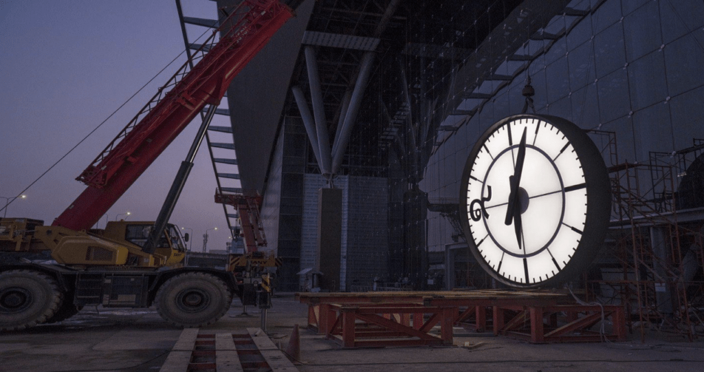 เครน SANY กับหน้าปัดนาฬิกาหมายเลข ๙ แลนด์มาร์กใหม่ ณ สถานีกลางบางซื่อ