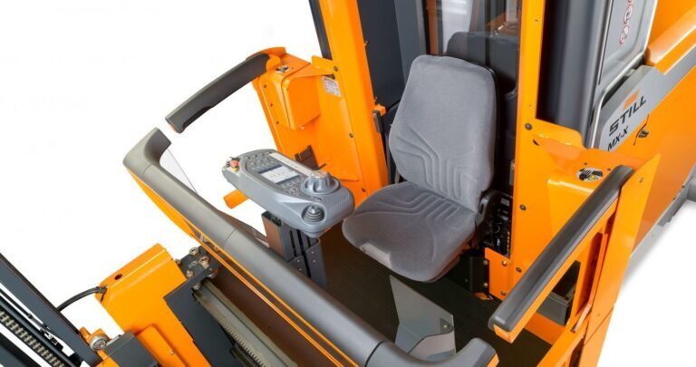 ห้องโดยสาร มีทั้งแบบยืนขับและนั่งขับ เป็นห้องสำหรับควบคุมการทำงานของชิ้นส่วนประกอบรถโฟล์คลิฟท์ทั้งหมด ไม่ว่าจะเป็นคันบังคับ พวงมาลัย ล้อยางรถโฟล์คลิฟท์ งายก เสายก ฯลฯ ให้เคลื่อนไหวไปในทิศทางที่ต้องการ - พวงมาลัย (Steering Wheel)